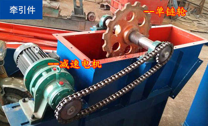 可用膠帶和鏈條兩種,膠帶和帶式輸送機(jī)的相同。料斗用特種頭部的螺釘和彈性墊片固接在牽引帶上,帶寬比料斗的寬度大35~40mm。