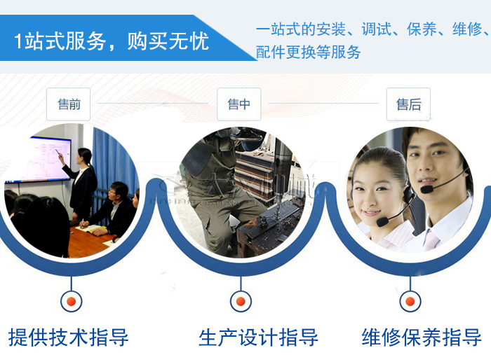 廠家提供免費(fèi)選型指導(dǎo),用戶也可以帶料試機(jī),車接車送,也可就近安排現(xiàn)場(chǎng)考察,一站式的安裝、調(diào)試、保養(yǎng)、維修、配件更換等服務(wù),讓客戶購(gòu)買、使用設(shè)備更放心,24小時(shí)x7全方位服務(wù),我們隨叫隨到。