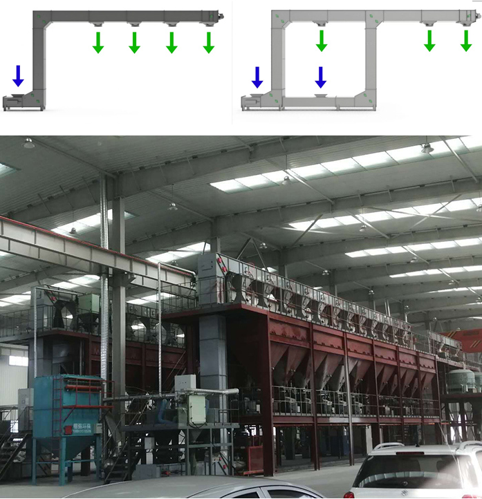 Z型提升機由于其組成靈活多變,機身緊湊,水平-垂直-水平輸送方式,大大減少了設備占地較大的情況。