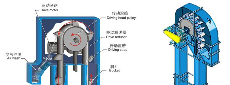 斗式提升機的卸料方式可分為離心式、重力式和混合式三種。