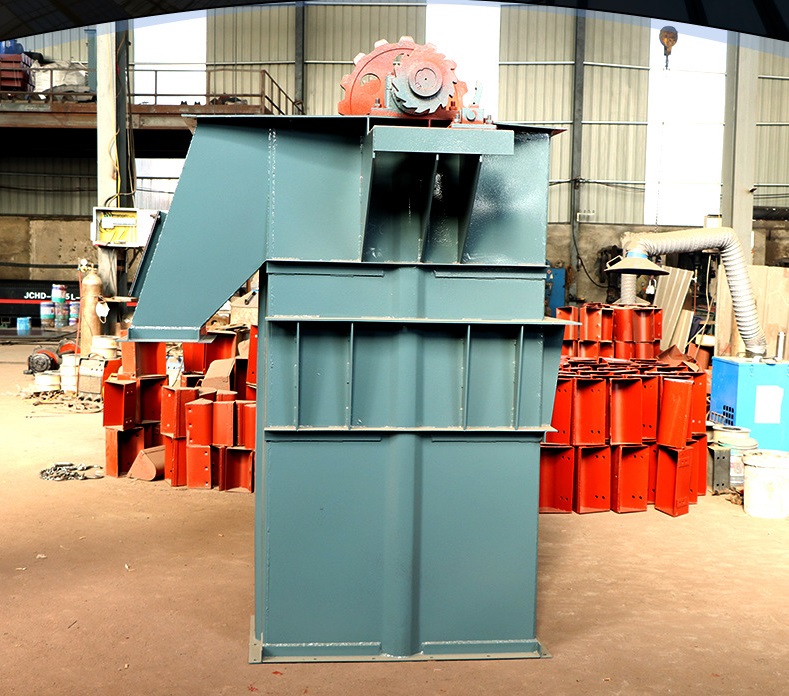 3、中部機殼分單,雙通道兩種形式。雙通道主要是加強整機的中間節強度,一般的單通道斗式提升機是料斗的上行和下行都是在一個機殼通道內。雙通道環鏈斗式提升機在同等條件下,提升量要比單通道垂直提升機提升量高30%左右。