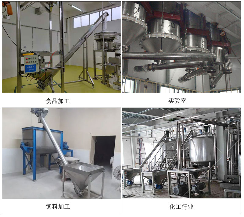 不銹鋼螺旋輸送機廣泛應用于各行業,如食品、調味品、農藥、獸藥、建材、化工、電力、冶金、煤礦炭、糧食等行業,適用于水平或傾斜輸送粉狀、粒狀和小塊狀物料,尤其適合食品、醫藥行業,滿足行業衛生標準,可輸送諸如面粉、飼料、花椒粉、藥粉等物料。