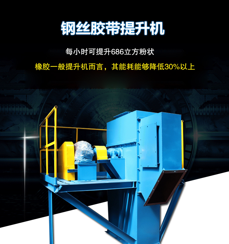 鋼絲膠帶斗式提升機(jī)固接著一系列料斗的牽引構(gòu)件(鋼芯繩芯橡膠帶)環(huán)繞在提升機(jī)的頭輪與底輪之間構(gòu)成閉合輪廓。驅(qū)動裝置與頭輪相連,使斗式提升機(jī)獲得動力并驅(qū)動運(yùn)轉(zhuǎn)。張緊裝置與底輪相連,使?fàn)恳龢?gòu)件獲得必要的初張力,以保證正常運(yùn)轉(zhuǎn)。物料從提升機(jī)的底部供入,通過輪廓。驅(qū)動裝置與頭輪相連,使斗式提升機(jī)獲得動力并驅(qū)動運(yùn)轉(zhuǎn)。張緊裝置與底輪相連,使?fàn)恳龢?gòu)件獲得必要的初張力,以保證正常運(yùn)轉(zhuǎn)。物料從提升機(jī)的底部供入,通過一系列料斗向上提升至頭部,并在該處實(shí)現(xiàn)卸載,從而實(shí)現(xiàn)在豎直方向內(nèi)運(yùn)送物料。