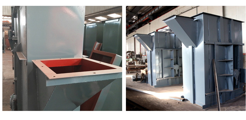 斗式提升機(jī)由上部區(qū)段、中部機(jī)殼、下部區(qū)段、帶料斗的輸送帶等牽引部件、傳動裝置和室外檢修平臺組成。